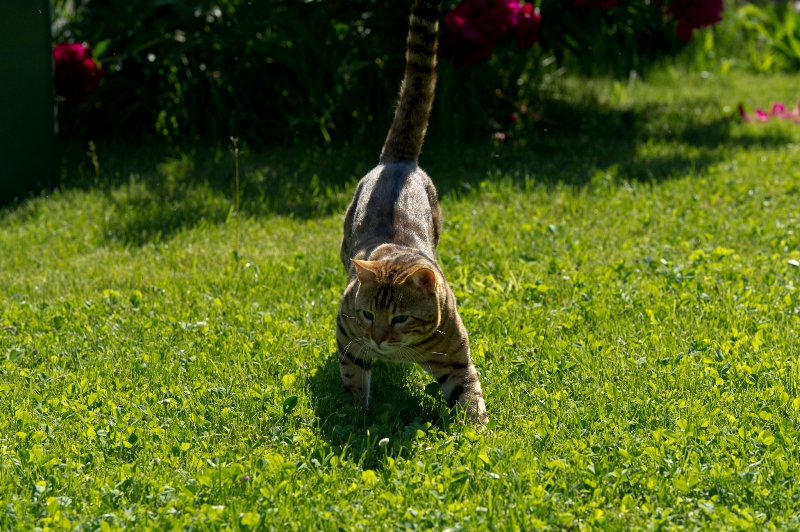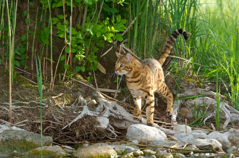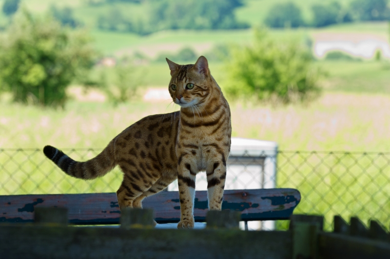 Basil stammt aus Estragon und Chanel (Coco), also aus einer Verpaarung, die uns eine ganze Reihe von tollen Show- und Zuchtkatzen geschenkt hat (Sedano, Red Hot Chili Pepper, Pimienta, Rucola und Sucette). In der Showsaison 2010/11 wurde er International Winner und weltweit bester erwachsener Bengal in der TICA. Bei ihm stechen besonders der wilde Kopf mit den kleinen, abgerundeten Ohren, der mächtige Nacken und sein sehr muskulöser Körper hervor. Aber auch mit seinem liebevollen Charakter und seiner lauten Stimme vermag er immer wieder Richter und Besucher um den Finger zu wickeln. Im Alter von beinahe 8 Jahren ist sein Herz noch einwandfrei und genetisch trägt er weder komische (unerwünschte) Farben noch Krankheiten: das macht ihn für die Zucht von unschätzbarem Wert.